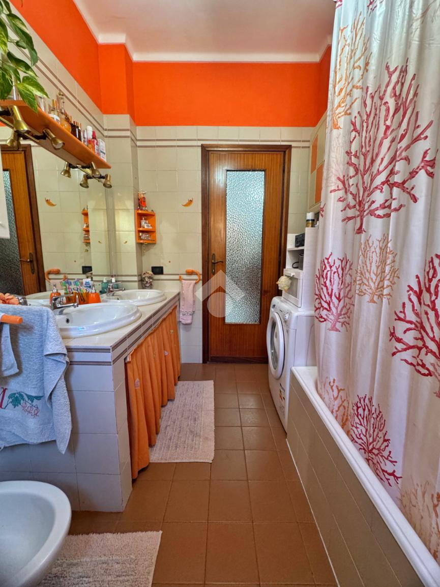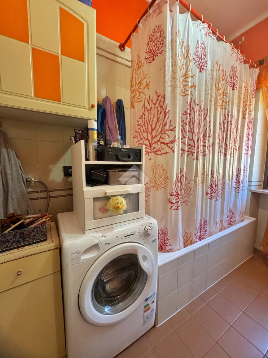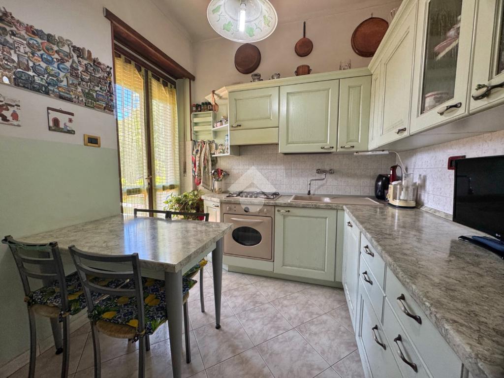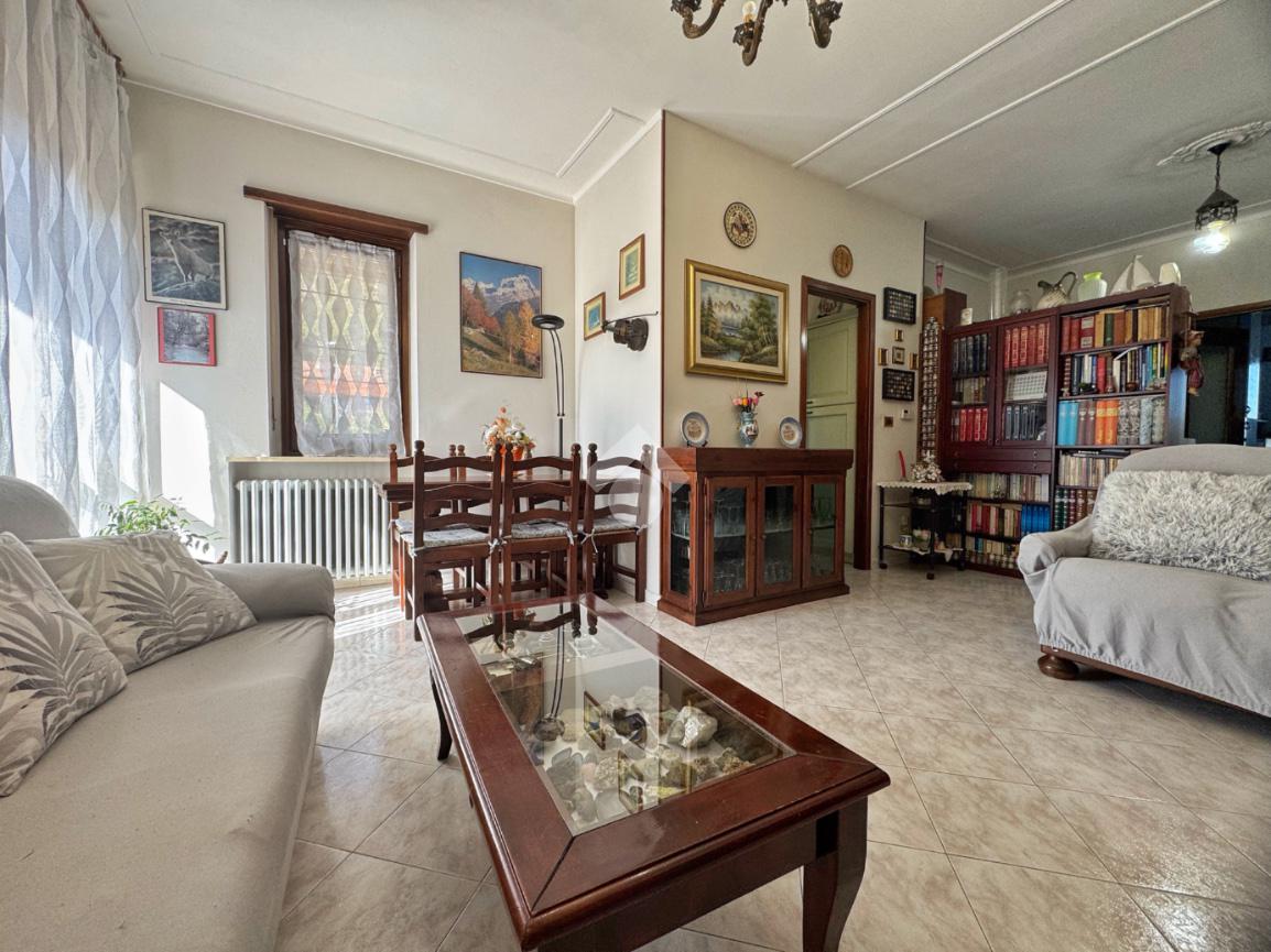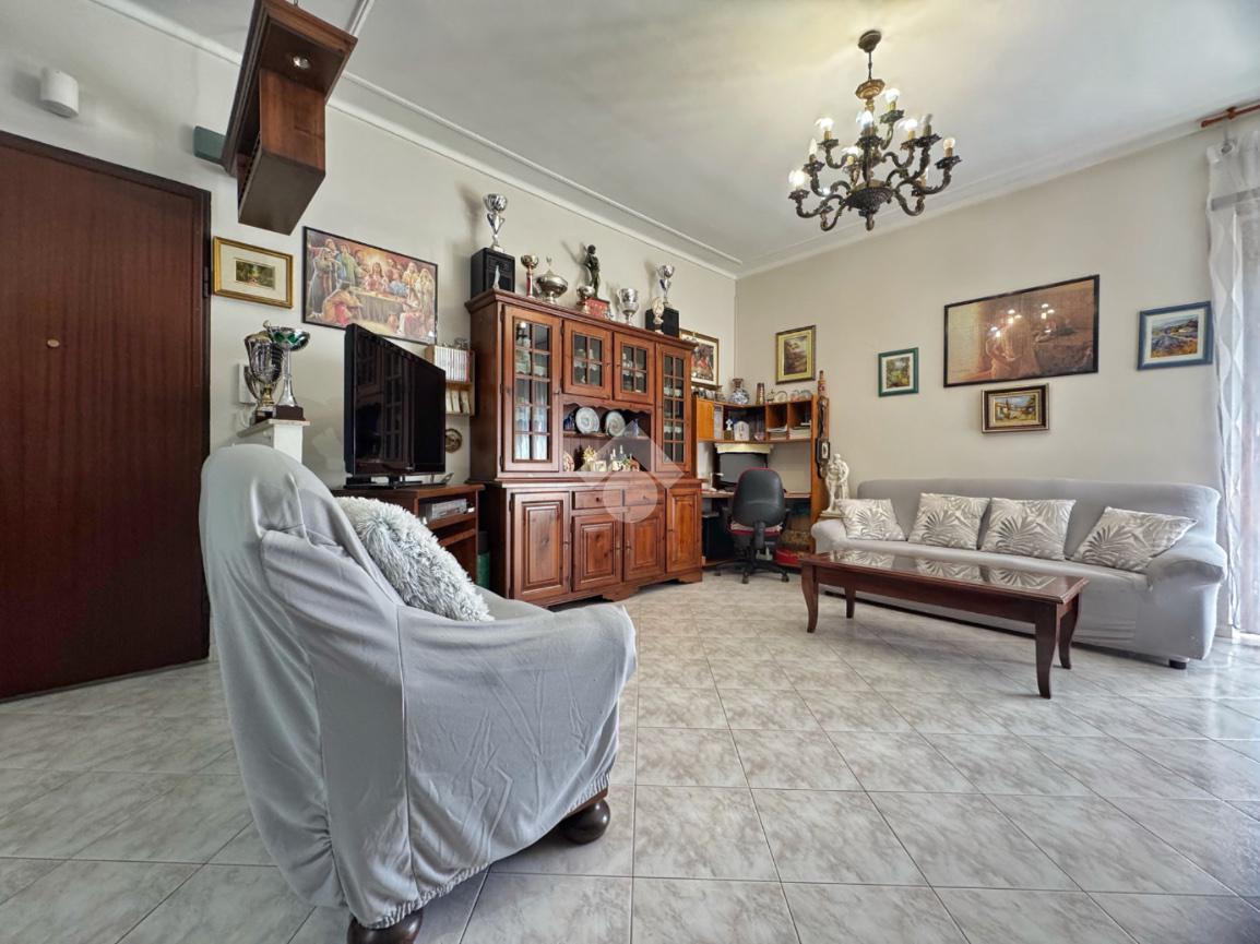 In una posizione riservata e ben esposta al sole, proponiamo appartamento situato al primo piano di una palazzina degli anni ’70, composta da sole sei unità abitative e circondata dal verde del giardino comune.