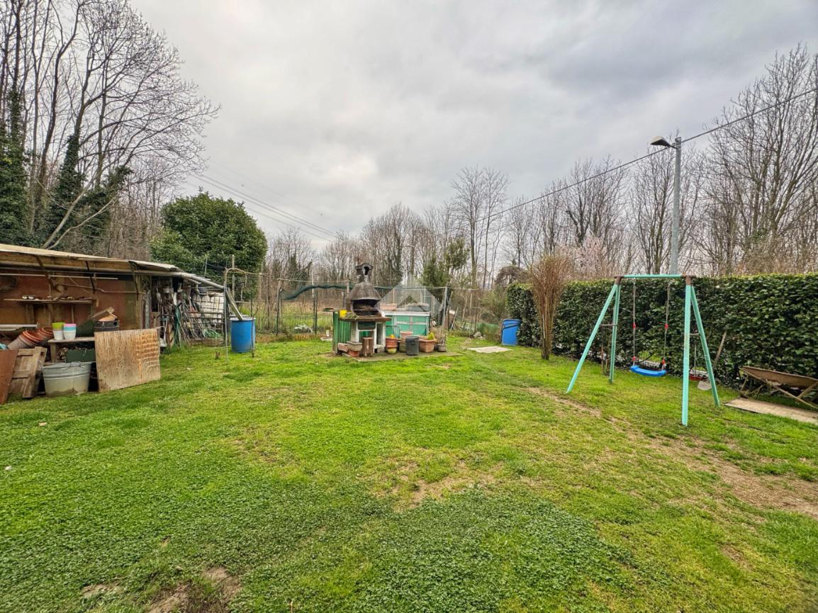 A completare la proprietà troviamo magazzino, cantina, tettoia, due box auto e il giardino che circonda l’abitazione.