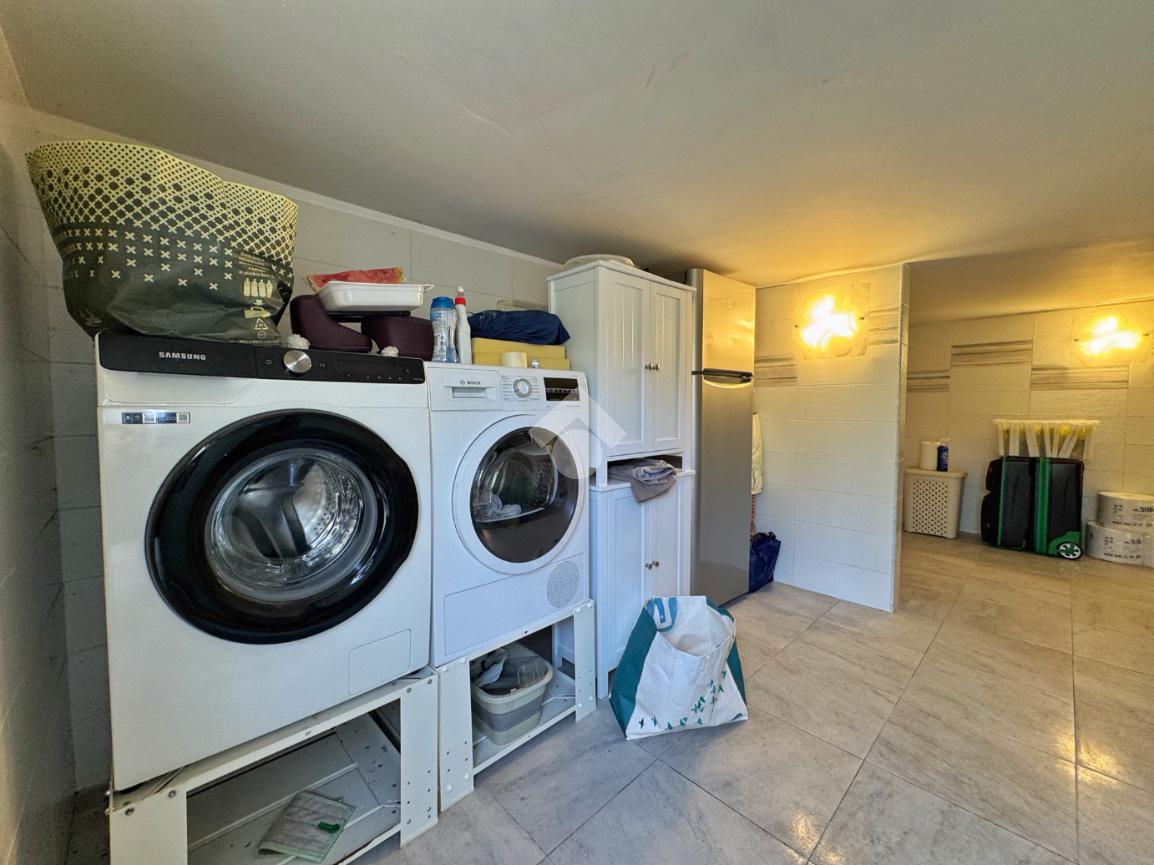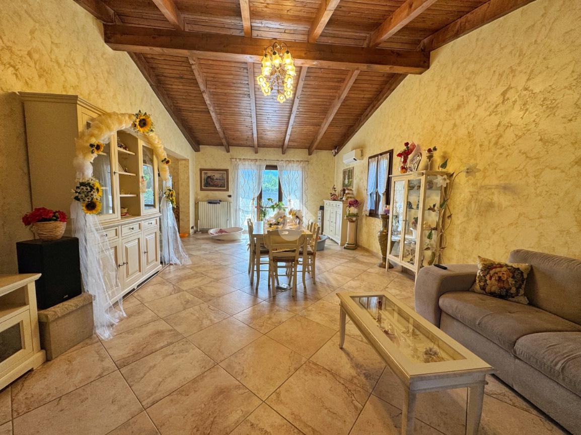 L’ingresso si apre su un ampio e luminoso soggiorno living con travi a vista, la cui generosa metratura consente di ricavare una seconda camera da letto. Completano la zona abitativa una camera matrimoniale e un bagno finestrato con doccia. Al piano interrato trova posto una comoda lavanderia e cantina