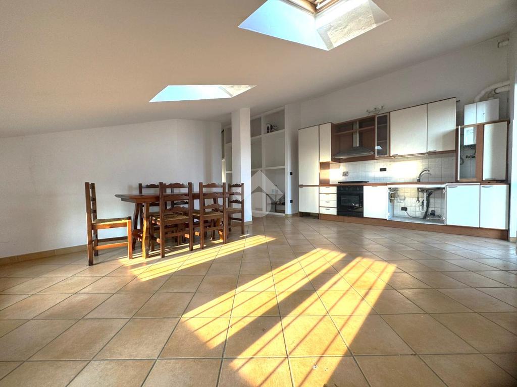 In zona centralissima e comoda a tutti i principali servizi del paese, proponiamo luminoso alloggio mansardato situato in una palazzina di recente costruzione.