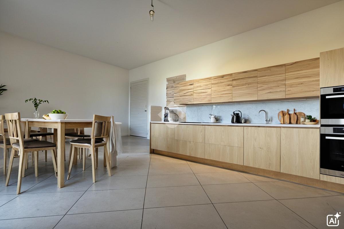 ingresso su luminoso living con angolo cottura