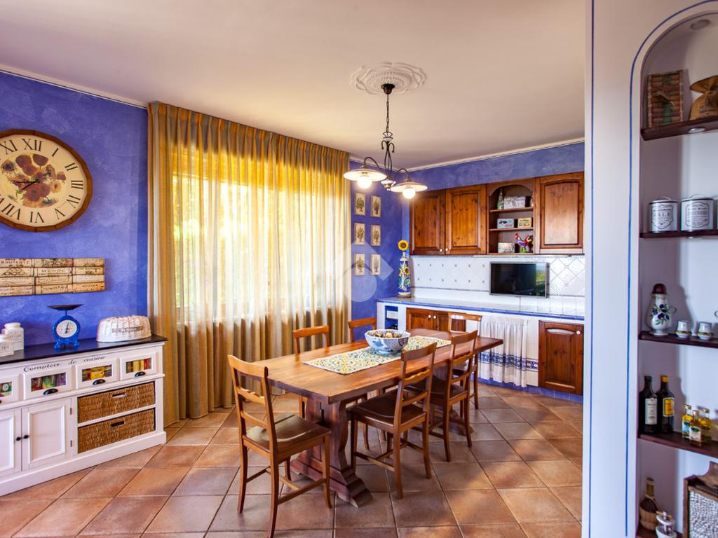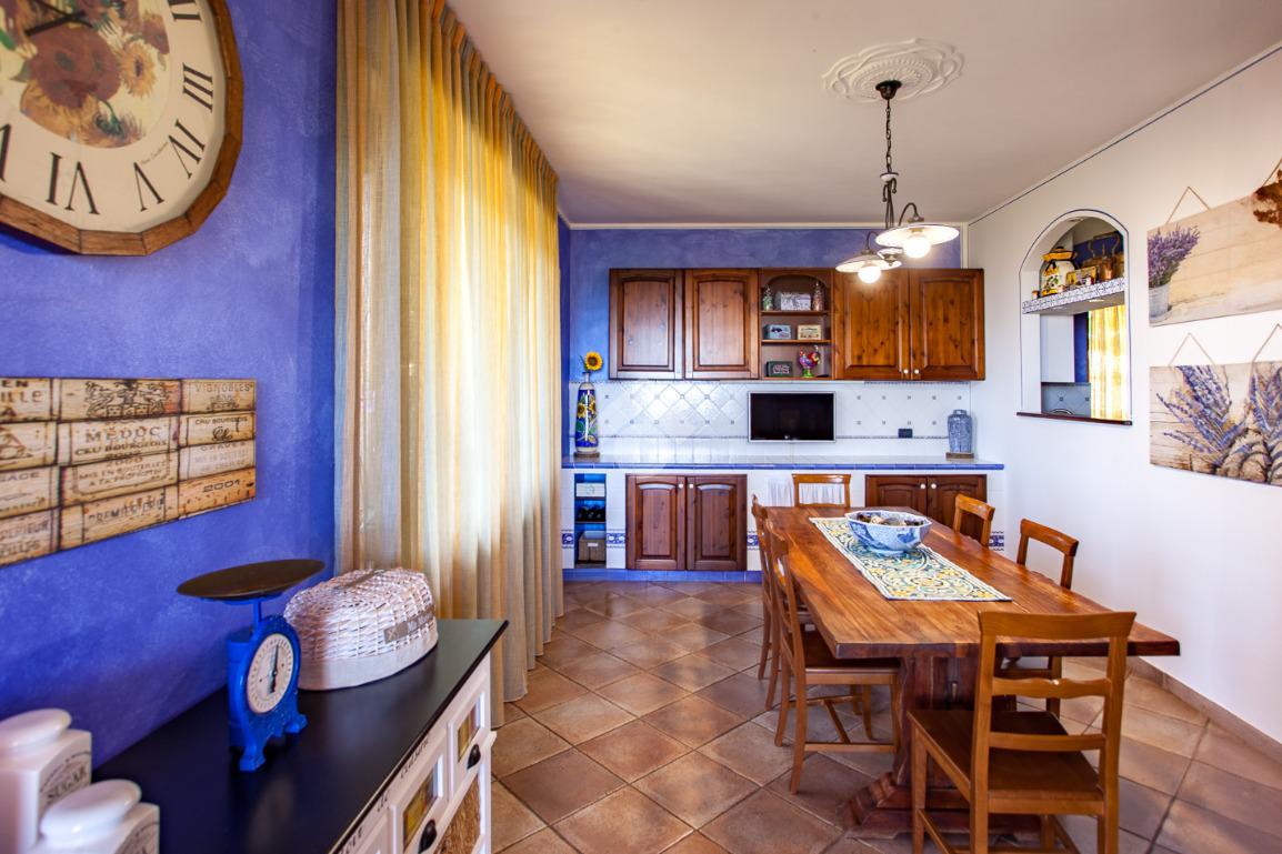 Piano primo: cucina in muratura di generose dimensioni, luminoso soggiorno doppio con accesso al terrazzo panoramico, due camere da letto e sala da bagno con vasca idromassaggio ad ozono.