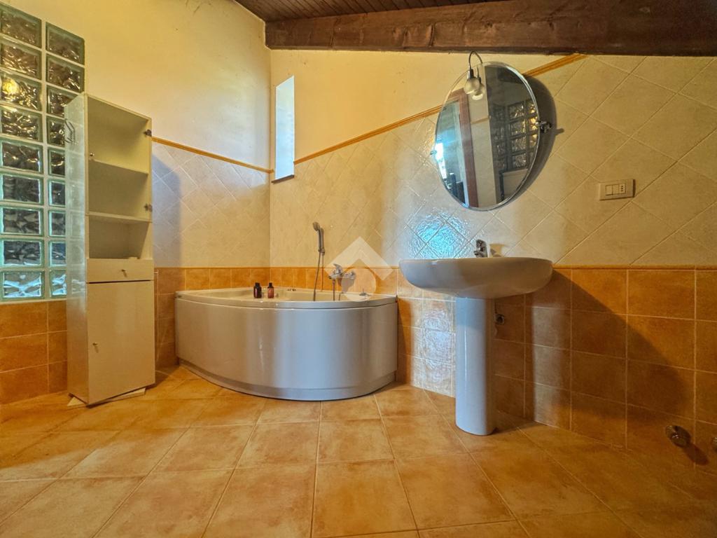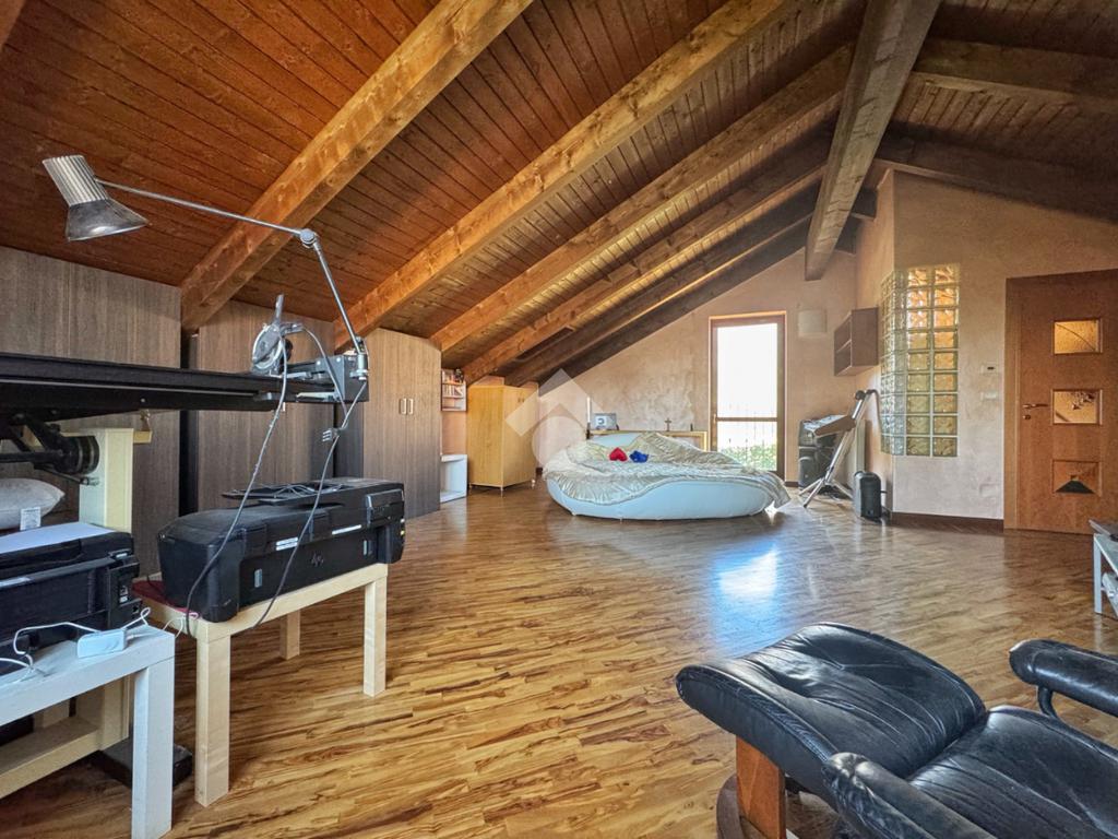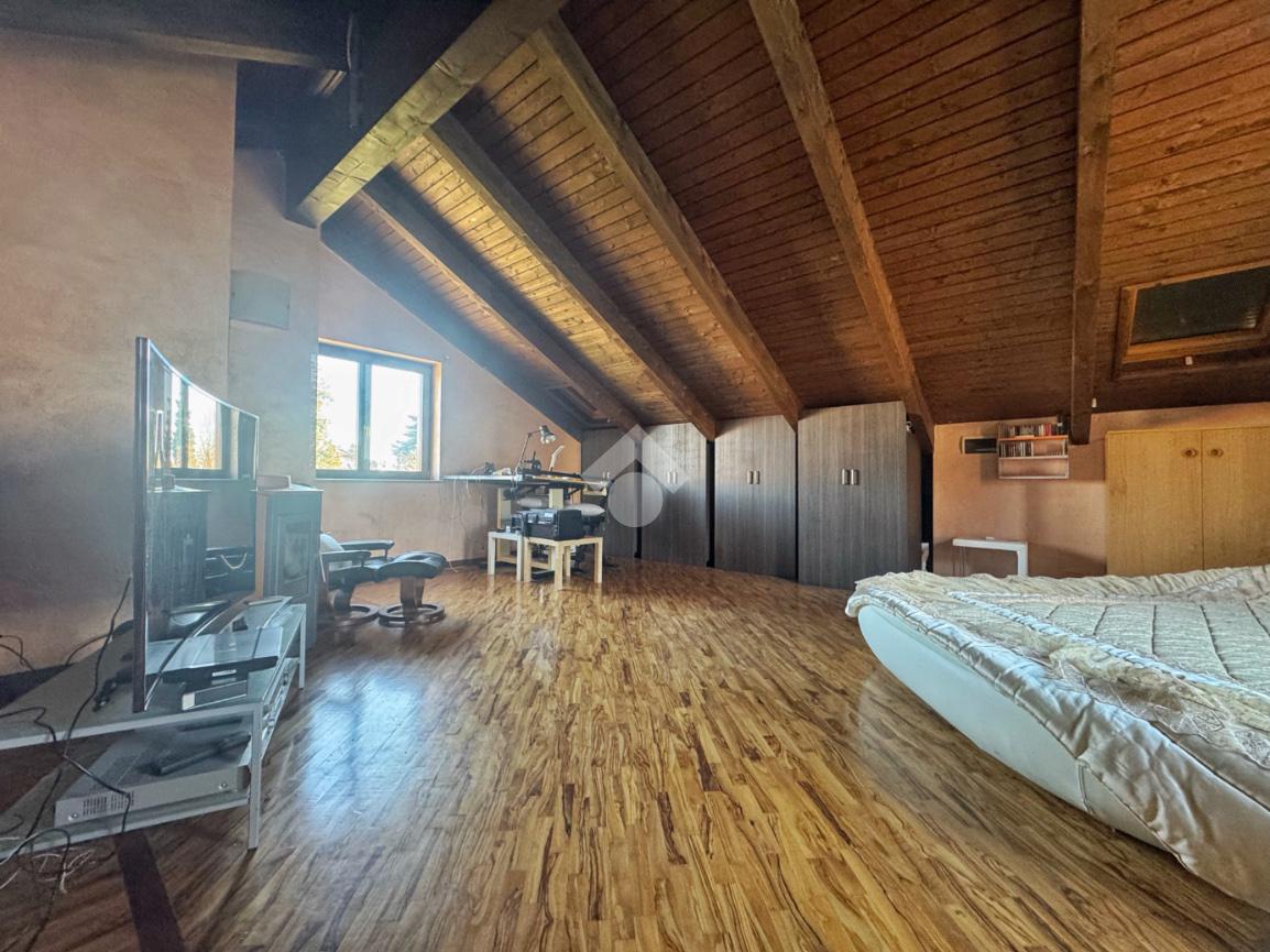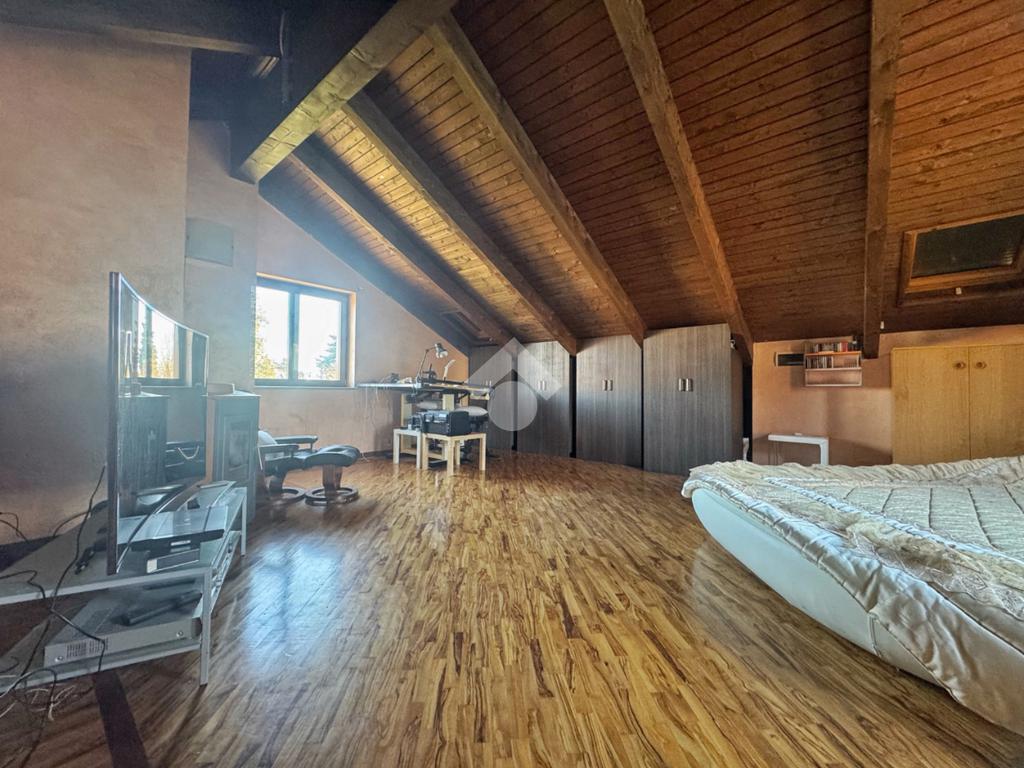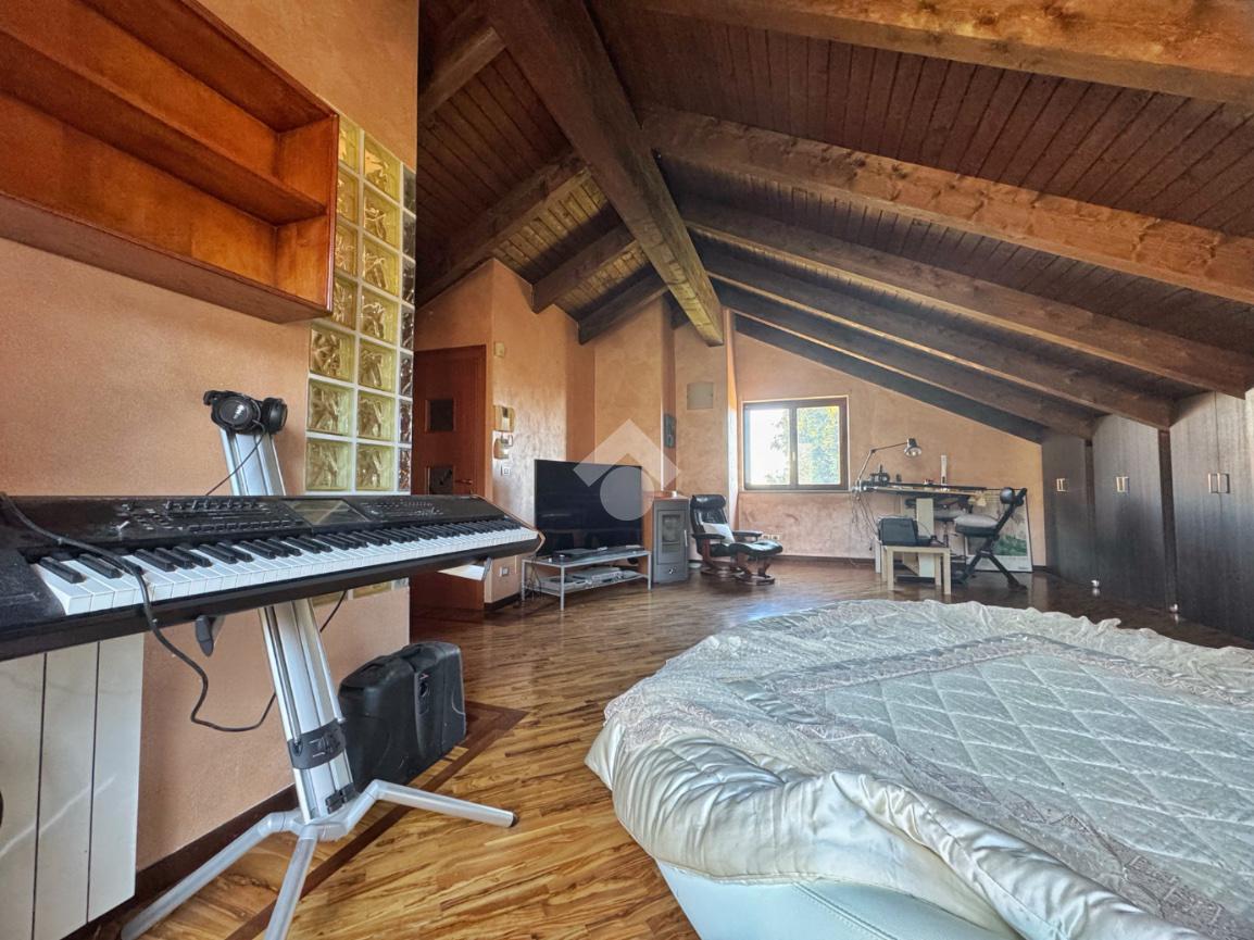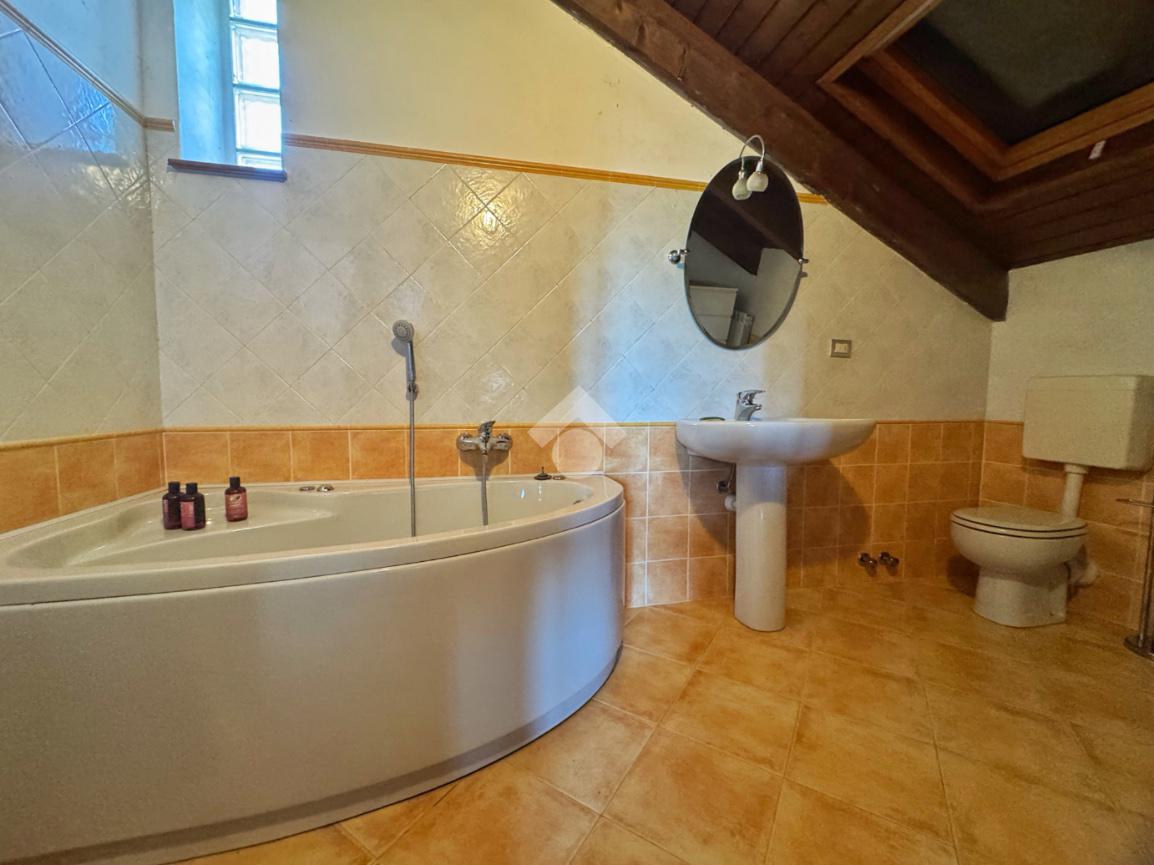 Al piano superiore, impreziosito dal tetto in legno a vista, si sviluppa una camera matrimoniale di generose dimensioni, estremamente luminosa e facilmente divisibile in due ambienti distinti. Il bagno della zona notte è dotato di una splendida vasca idromassaggio che trasforma lo spazio in un vero angolo benessere privato.
